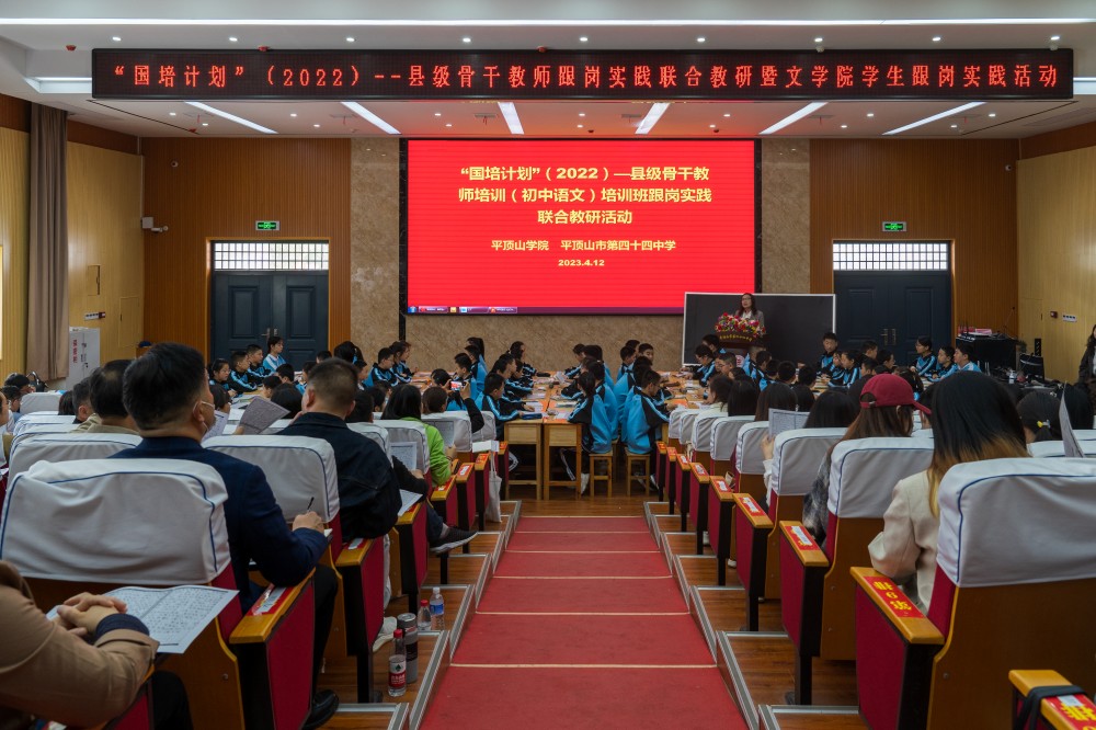 4月12日下午,国培计划(2022)县级骨干教师跟岗实践联合教研暨文学院学生跟岗实践活动在平顶山市第四十四中学(以下简称四十四中)举行,我院教师刘春艳,国培计划(2022)培训班学员以及我院2020级汉语言文学2班学生100余人参加了此次活动。活动由平顶山市第四十四中学校长景艳伟主持。