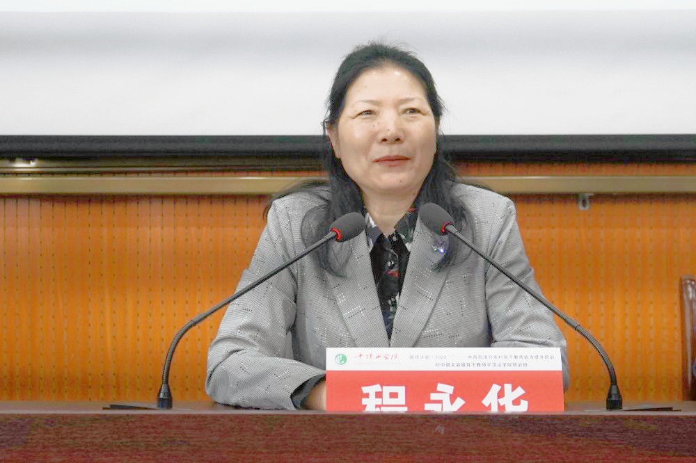 程永华对各位学员的到来表示欢迎。她向大家介绍了平顶山学院的办学历史,2022年度“国培计划”培训项目的基本情况。她指出,这次培训机会来之不易,学员之间应该互相学习,将理论知识转化为教学实践,有所收获。“聚是一团火,散是满天星”,她希望学员们化身基础教育的“火种”,将培训所获带回原单位,辐射到更多的老师,让更多学子受益。她强调,党的二十大对我们的教育和文化作出了新的部署,希望各位学员借着国家政策的东风扬帆起航,成为联通平顶山学院与基层教育的桥梁,全面推进新征程上中学写作教学的高质量发展。