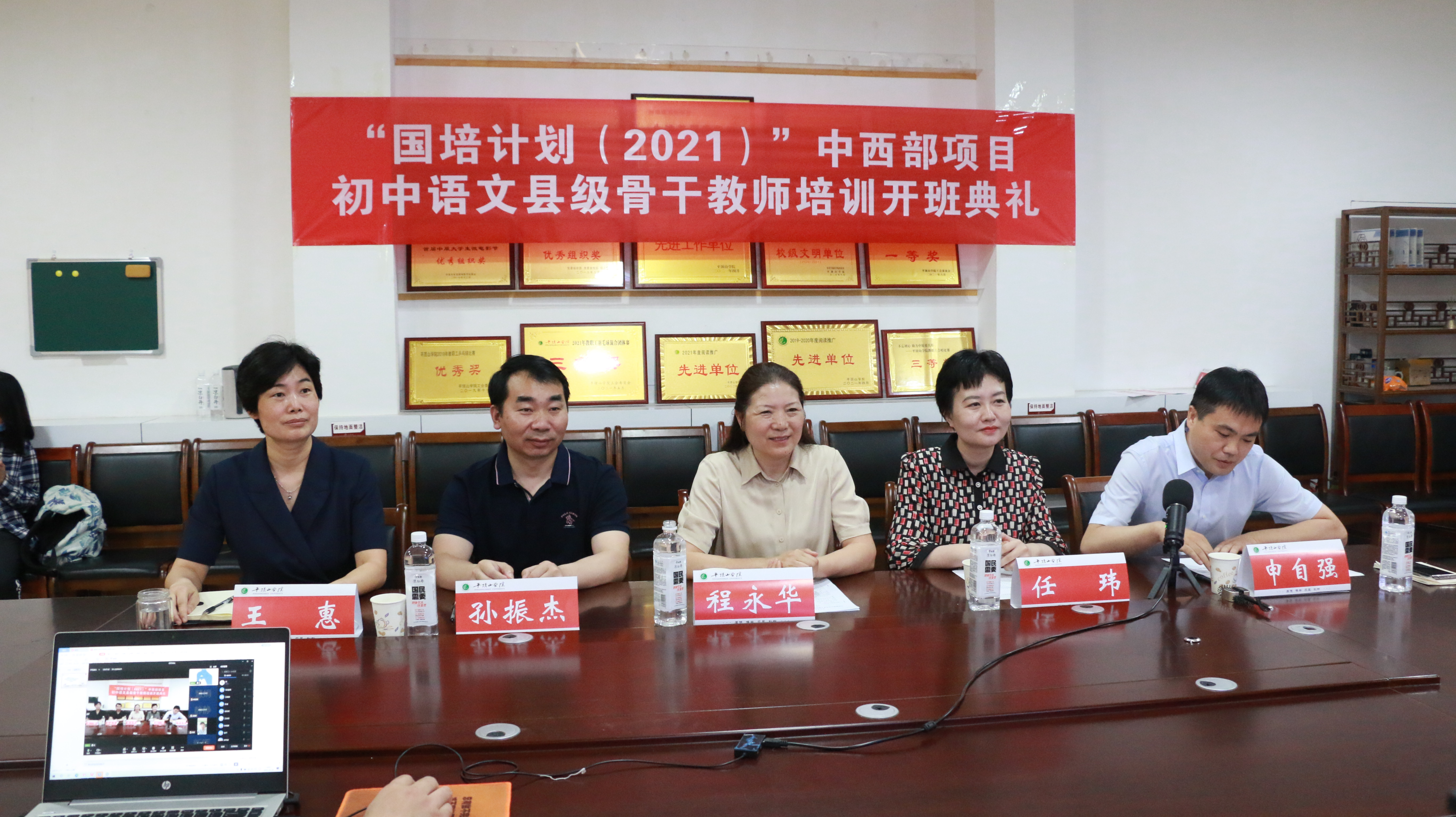 5月30日上午,由文学院承办的“国培计划(2021)——县级骨干教师培训项目(初中语文)”开班典礼在文学院会议室举行。副校长程永华,我校继续教育学院、文学院相关负责人,培训班班主任及来自全省各地的30多名骨干教师以线上形式参加了开班典礼,开班典礼由文学院党委书记申自强主持。