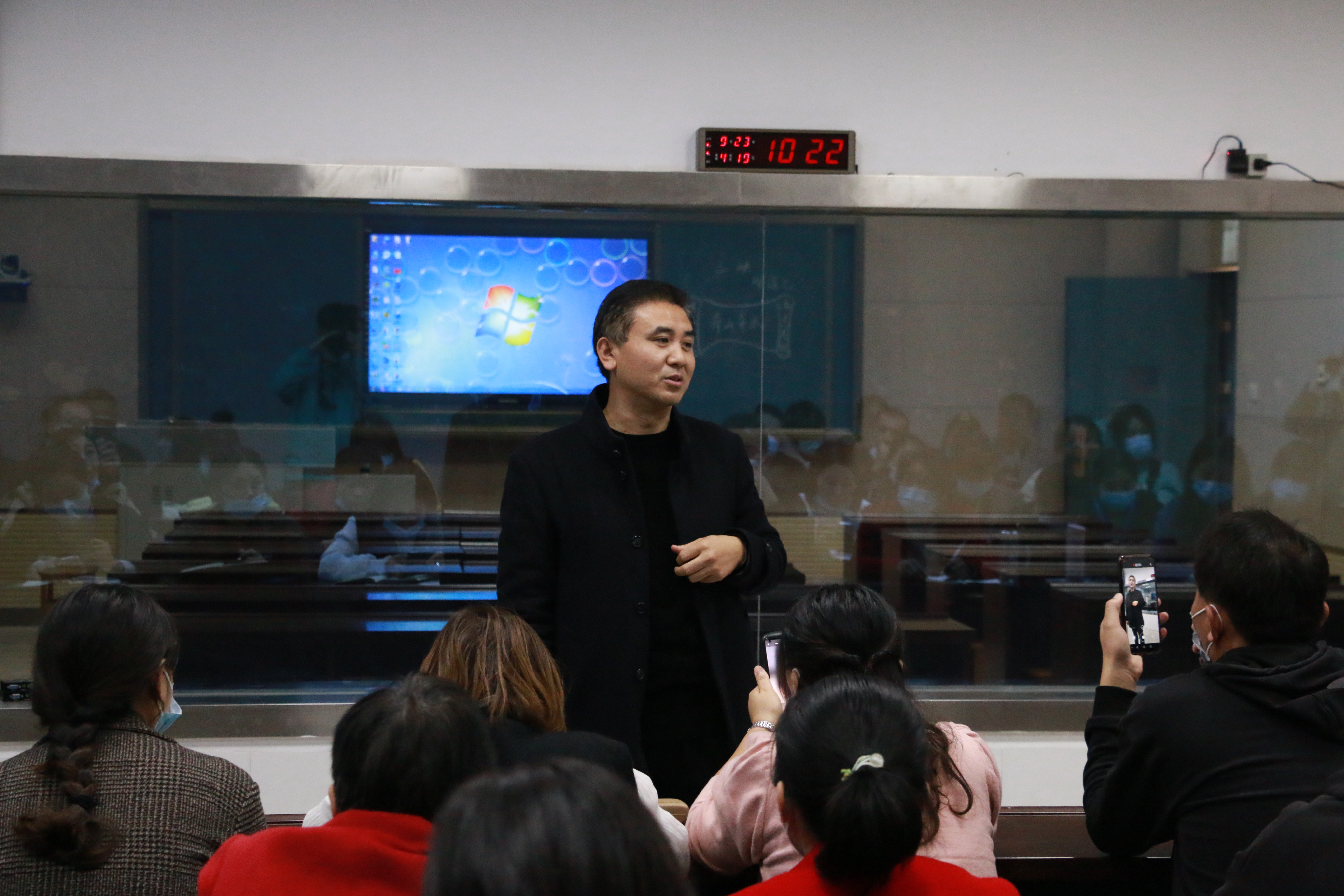 平顶山市第四十一中学教导主任刘占领以“课堂教学的智慧和创新”为主题进行了教学方式分享。他表示,中学语文教学构建高效课堂十分重要,并分享了自己的高效课堂小组合作学习教学模式的成熟思路。