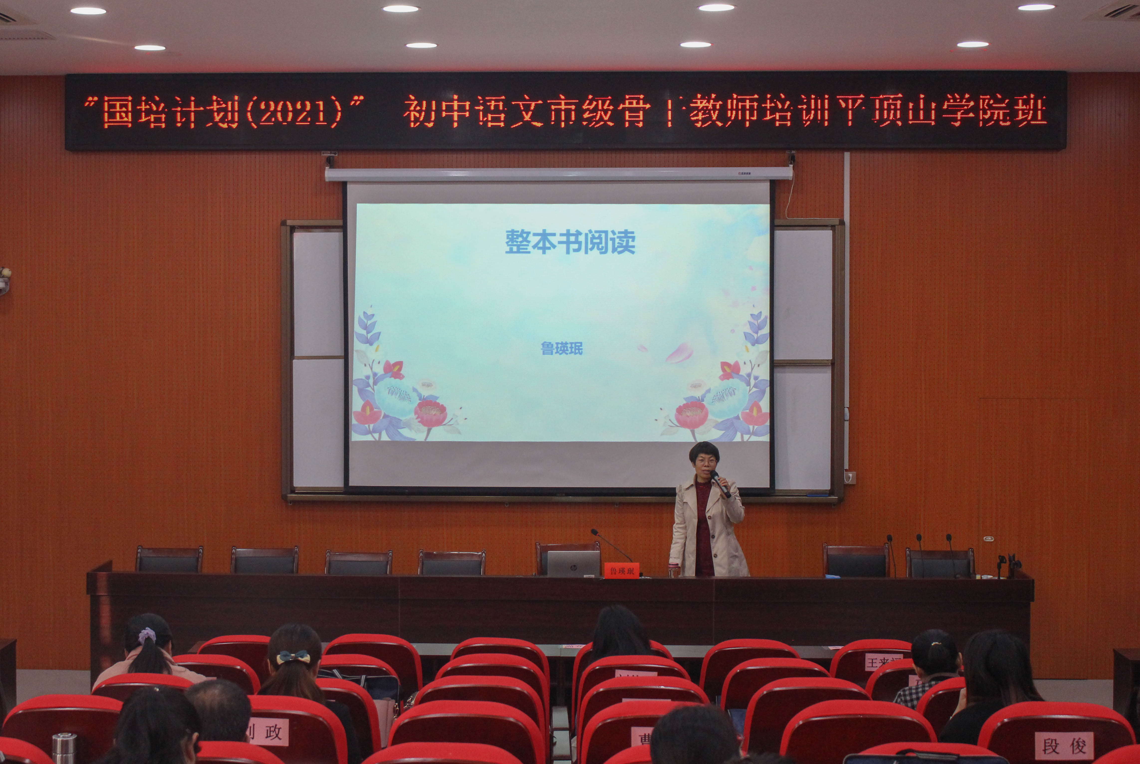 10月24日上午,河南省教学名师、南阳市中学语文教师鲁瑛珉为国培计划(2021)初中语文市级骨干教师培训班学员作了一场题为《整本书阅读——奇文共欣赏,疑义相与析》的讲座。