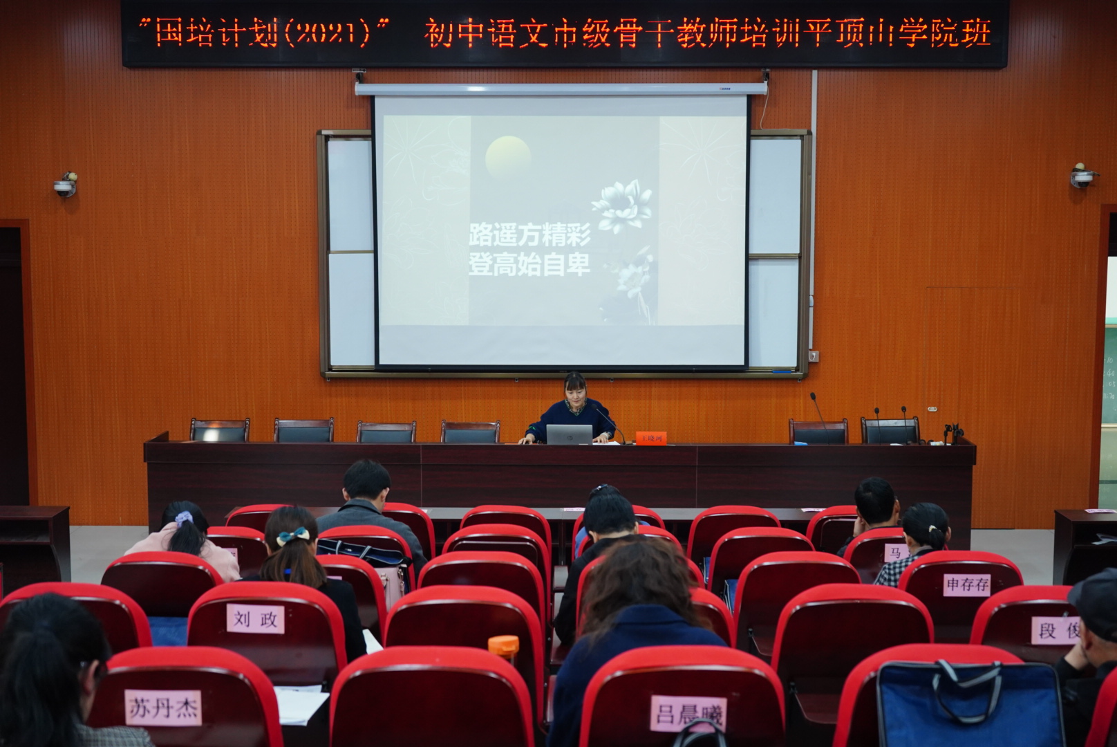 10月23日上午,应国培计划(2021)初中语文市级骨干教师培训班邀请,在平顶山学院崇文校区C004教室,河南省优秀教师,平顶山市教育体育局基础教研室教研员王晓珂为“国培计划”学员作了一场中学语文教学专题讲座。