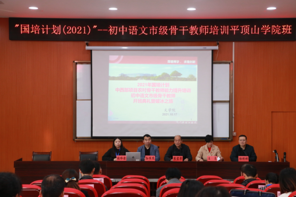 雪中送炭为教育,促进改革向未来。10月17日上午,由平顶山学院文学院承办的“国培计划(2021)”——中西部项目农村骨干教师能力提升培训·初中语文市级骨干教师平顶山学院班开班典礼顺利举行。继续教育学院院长李宏亭、文学院院长孙振杰、文学院副院长王惠等相关单位负责人、工作人员及来自全省各地的50名学员参加了典礼。